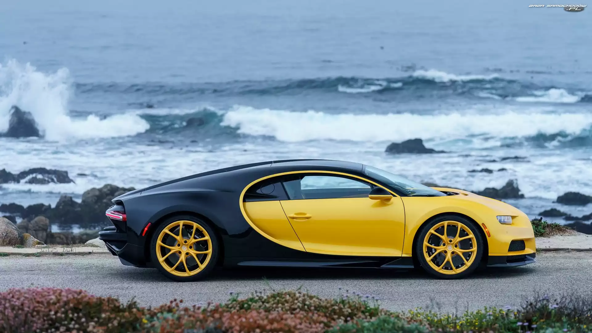 Samochód: Żółto-czarny, Wybrzeże, Bugatti Chiron