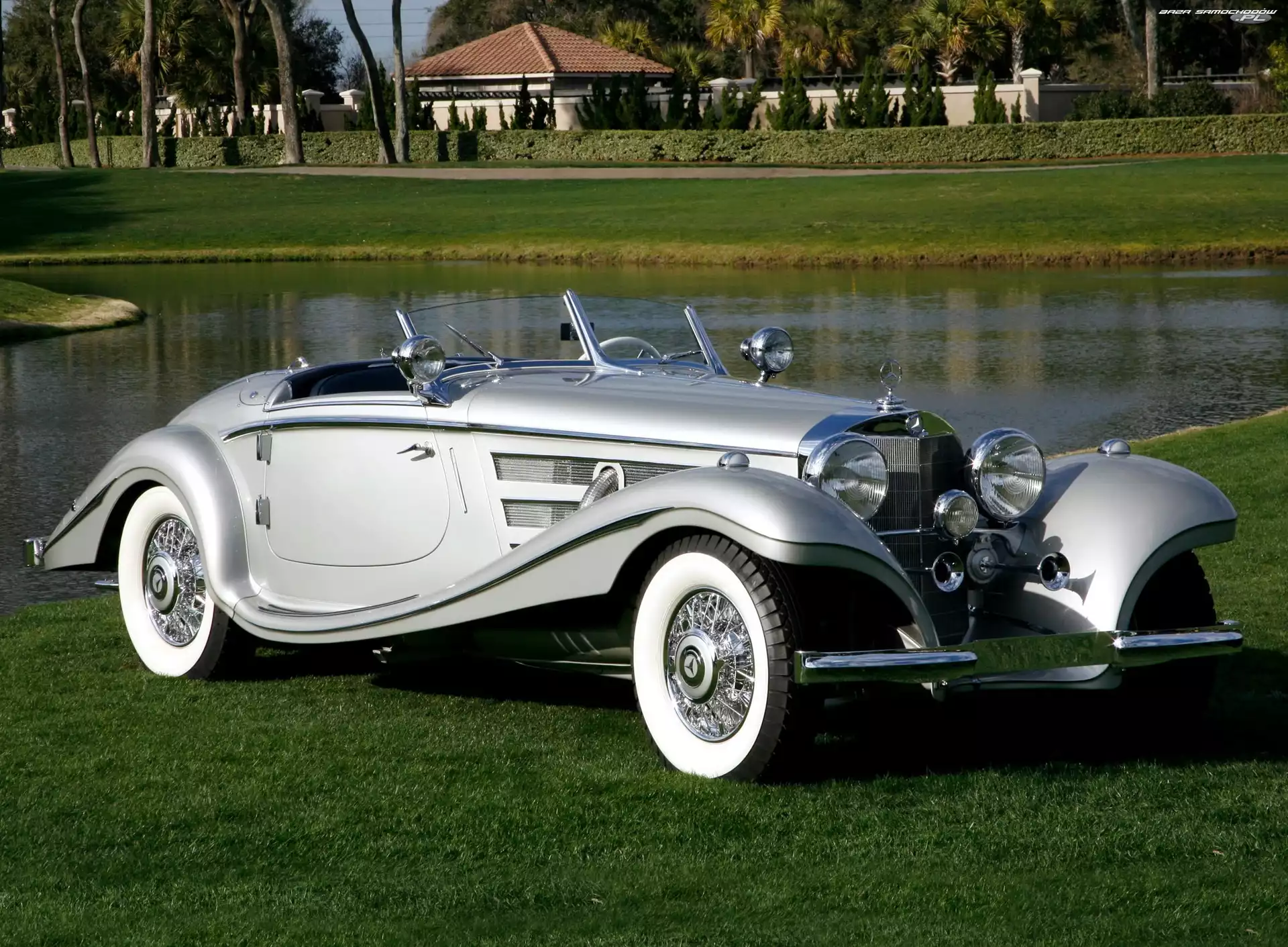 Samochód: Kabriolet, Mercedes Benz 500K, Srebrny