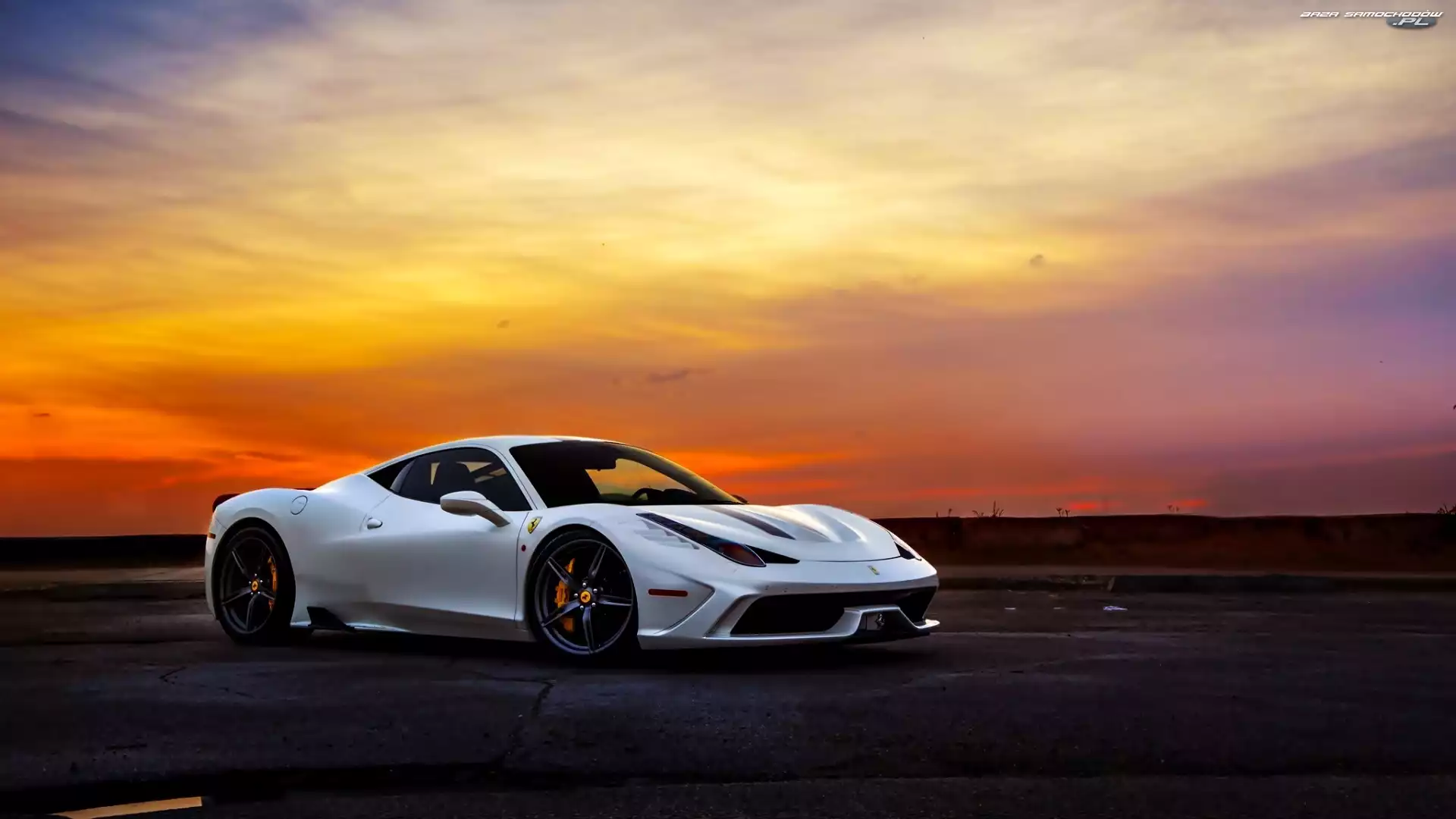 Samochód: Zachód Słońca, Italia, Ferrari, Biały, Supercar, 458, Speciale