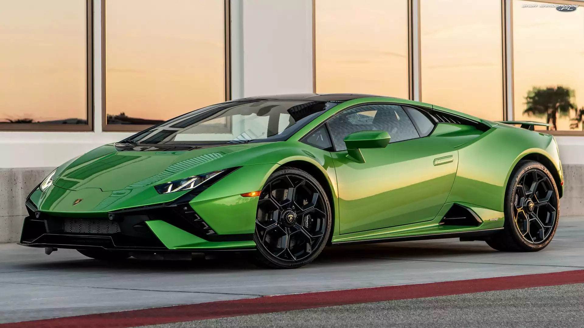 Samochód: Bok, Zielone, Lamborghini Huracan Tecnica